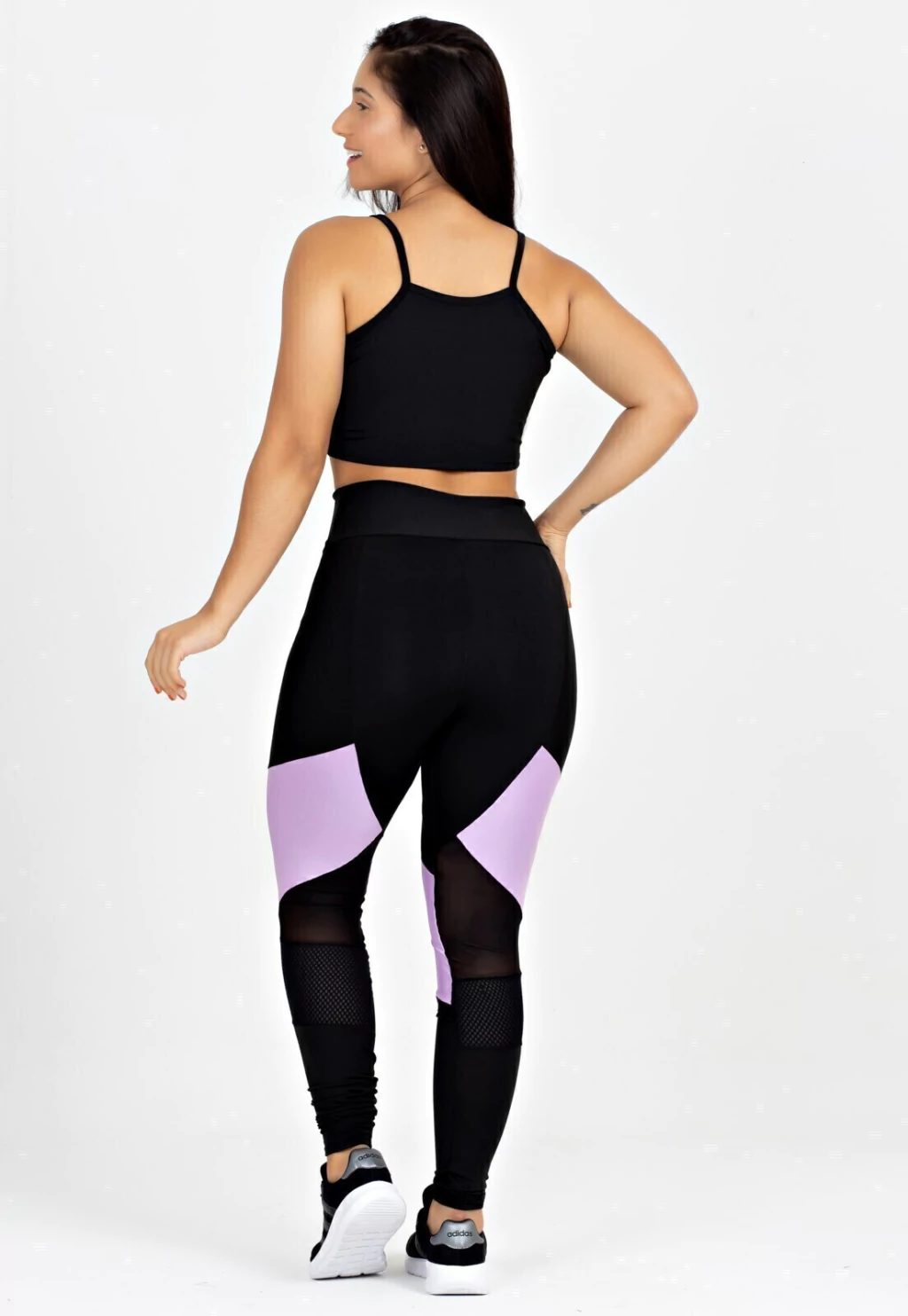 Características do Conjunto Fitness Cropped Tule + Calça Legging Detalhe Lilás REF: MTF122