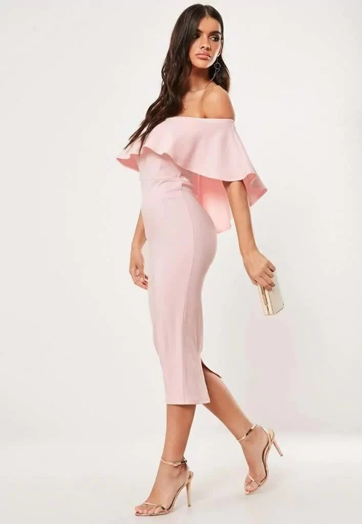 Características do Vestido Midi Com Babado E Fenda REF: MR019