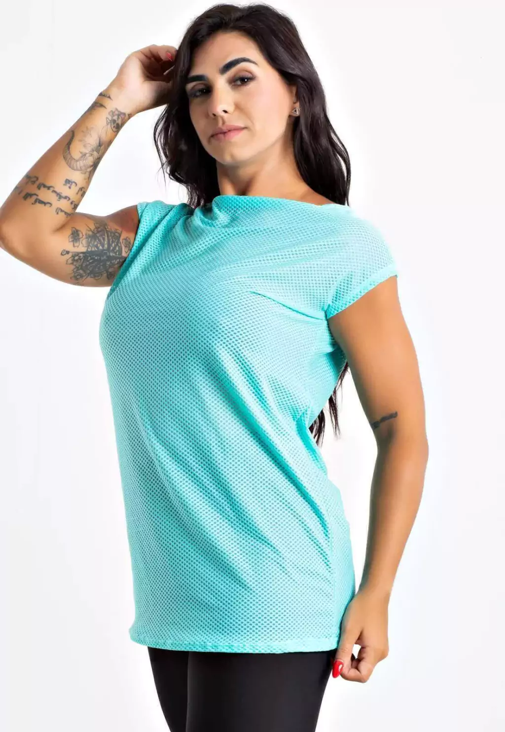 Blusa Turquesa Fitness Tela Manga Curta REF: BLMC1