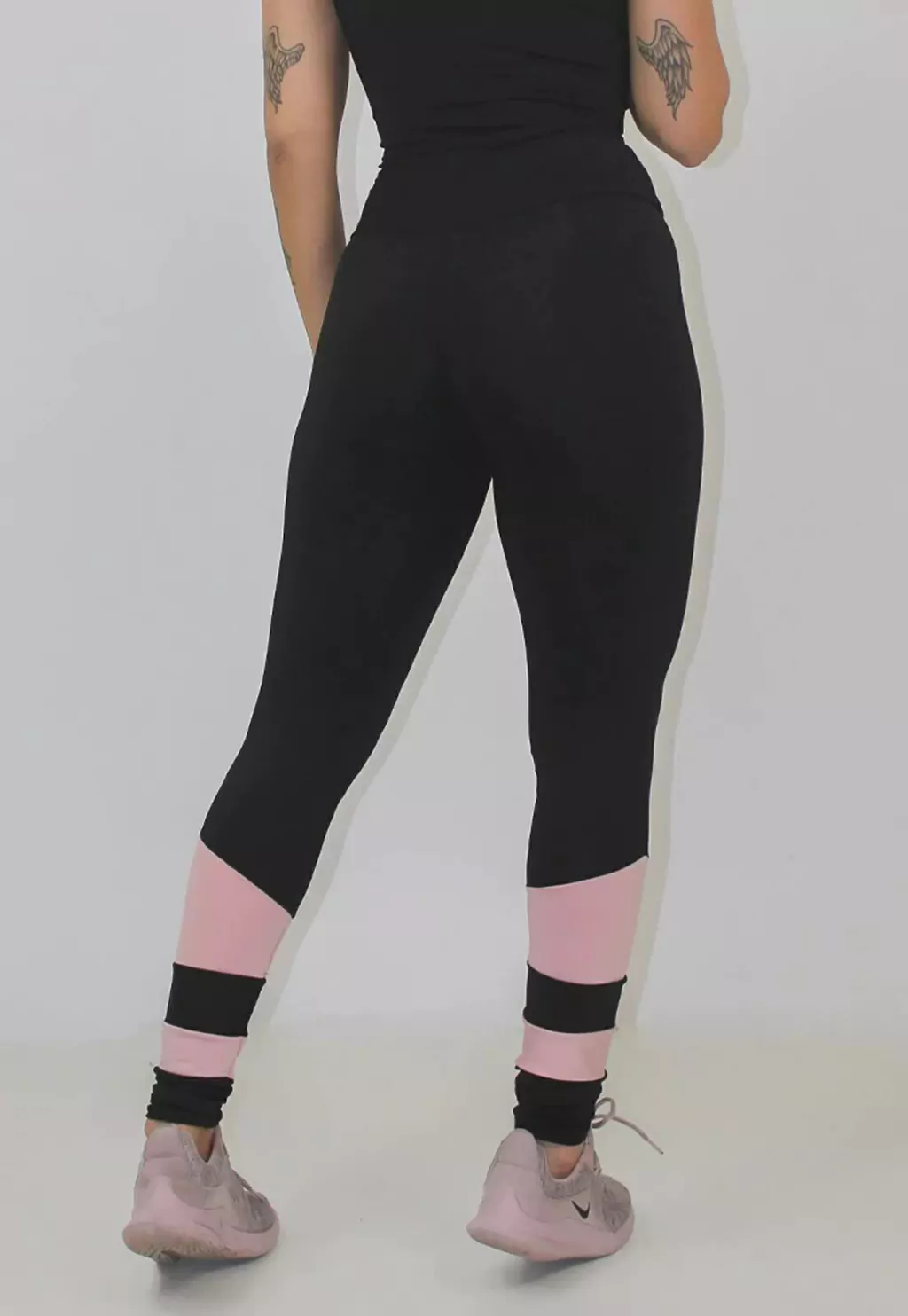 Características da Calça Preto com Rosê Detalhe Canela Legging Fitness REF: LX91