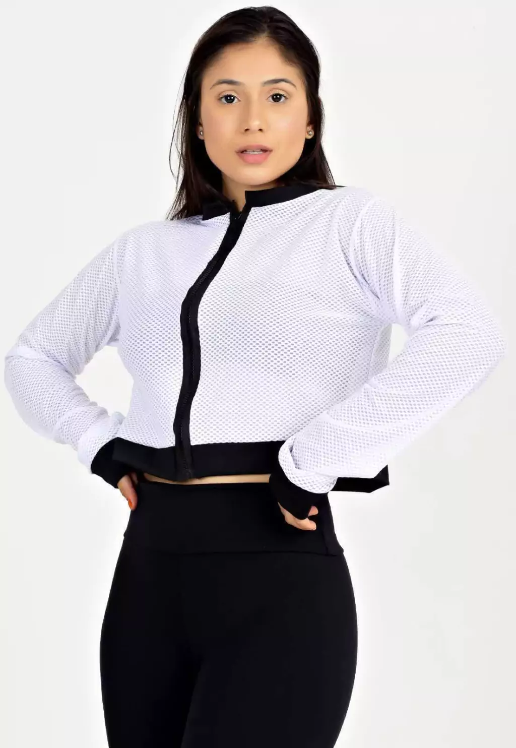 Características do Casaco De Tela Com Ziper Branco Fitness REF: MTF22