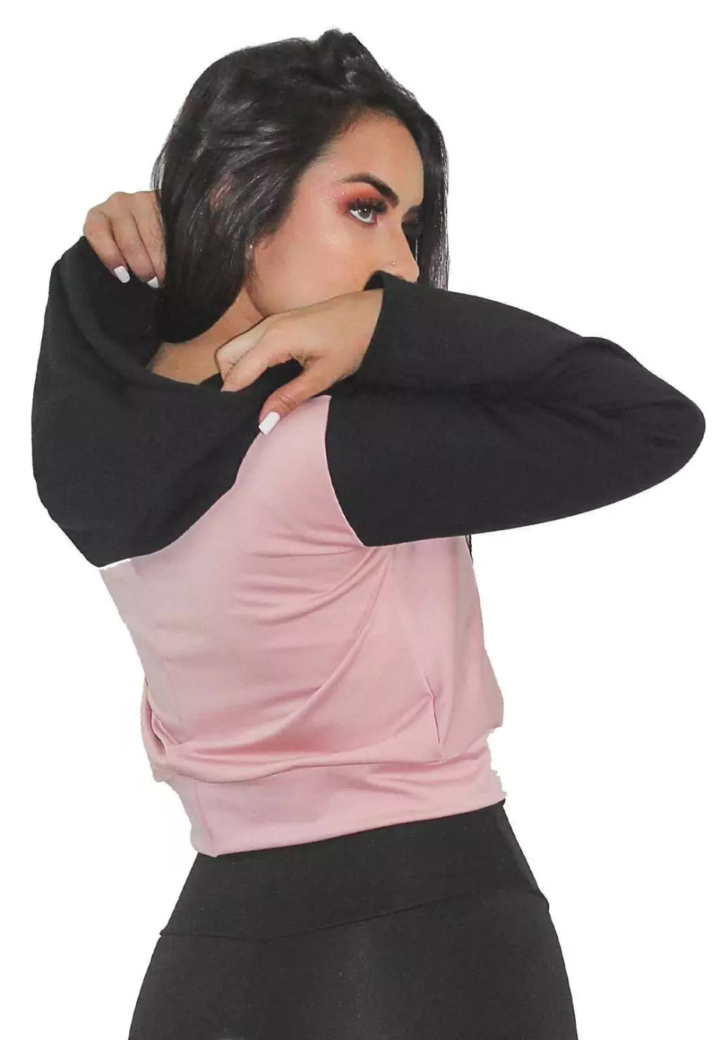 Características do Casaco Suplex Rosê e Preto Feminino Moletom Com Capuz REF: CSC6