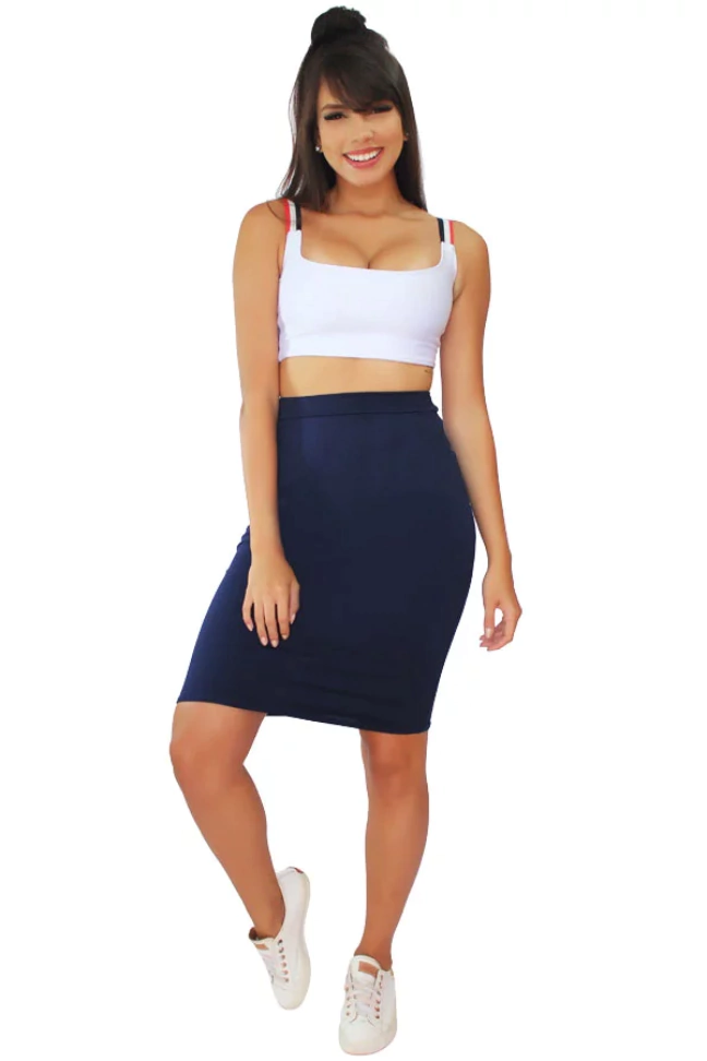 Características do Conjunto Cropped Duplo com Faixa de Listras e Saia Tubinho REF: VRP326