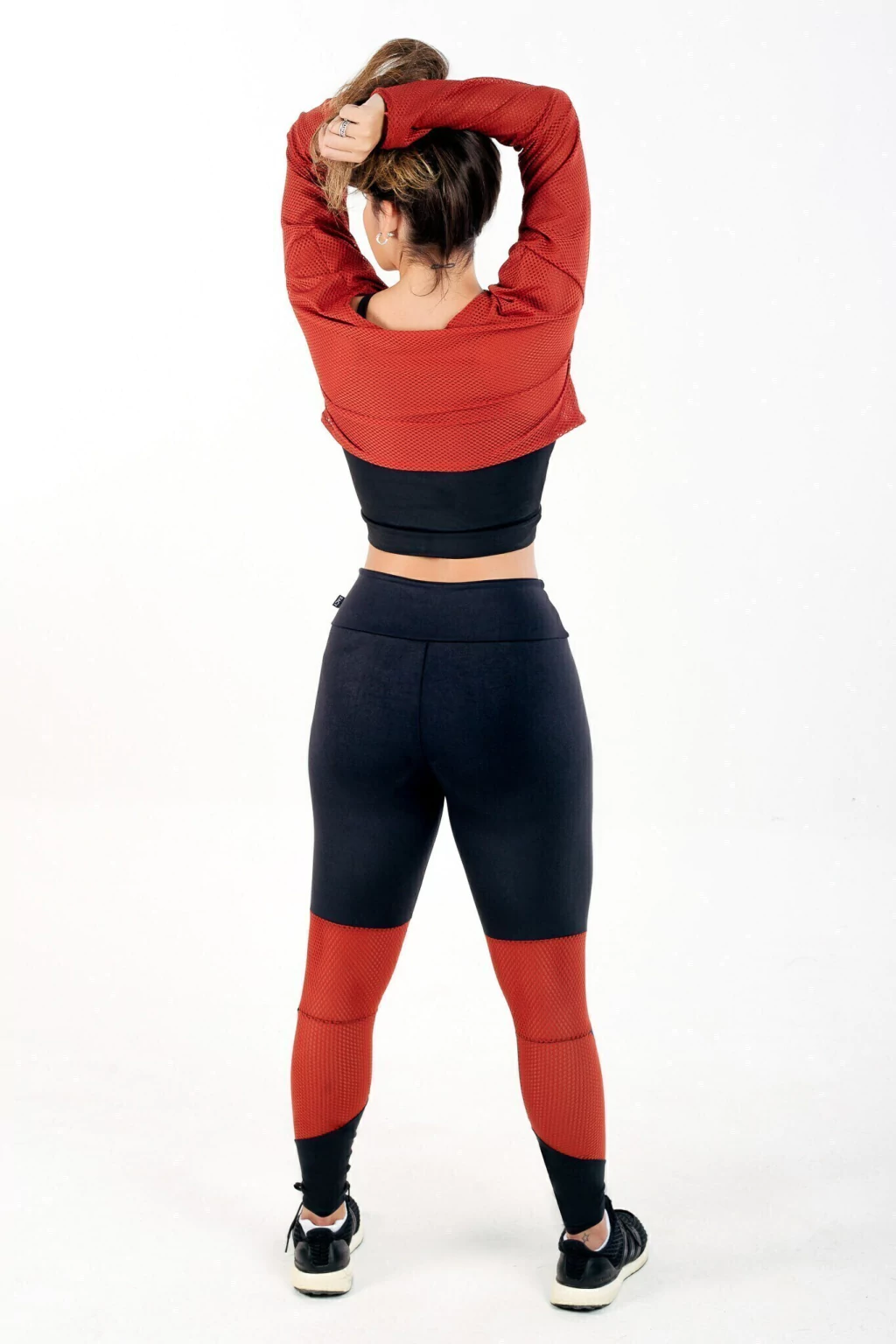Características do Conjunto Fitness Calça Legging + Cropped de Telinha Manga Longa com Detalhes em Terra Cota REF: LX147