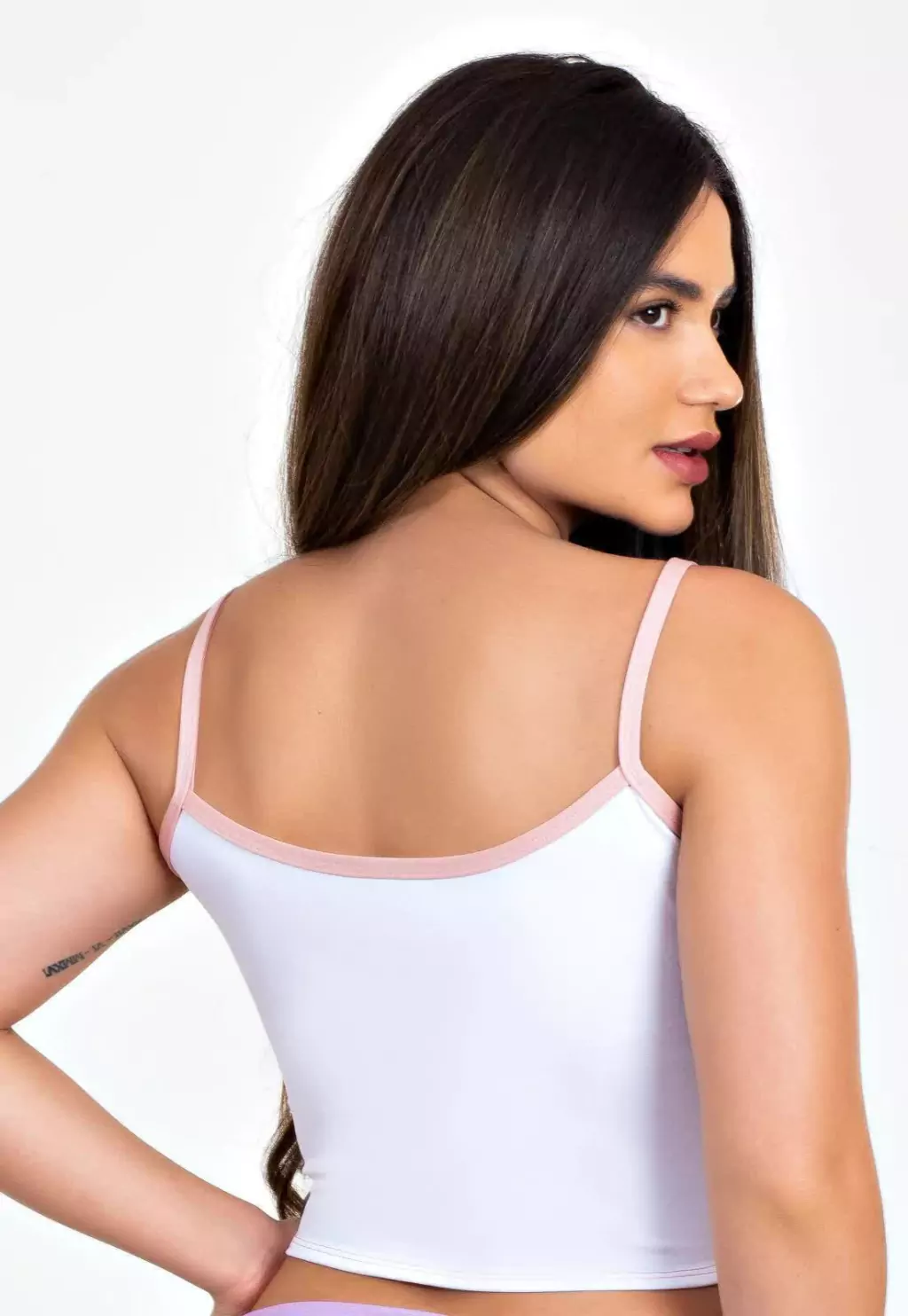Características da Cropped Rose Com Branco Detalhe Rasgado REF: LX297