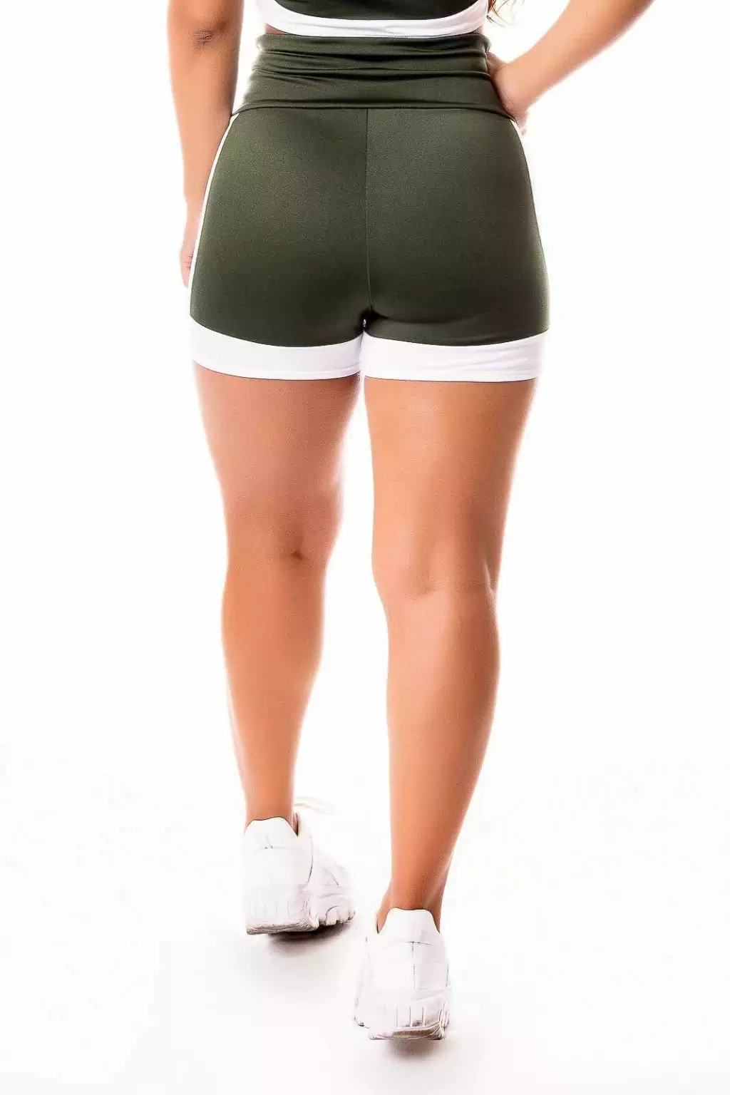 Características do Short Fitness Academia Verde Militar com Branco Cintura Alta REF: SV29